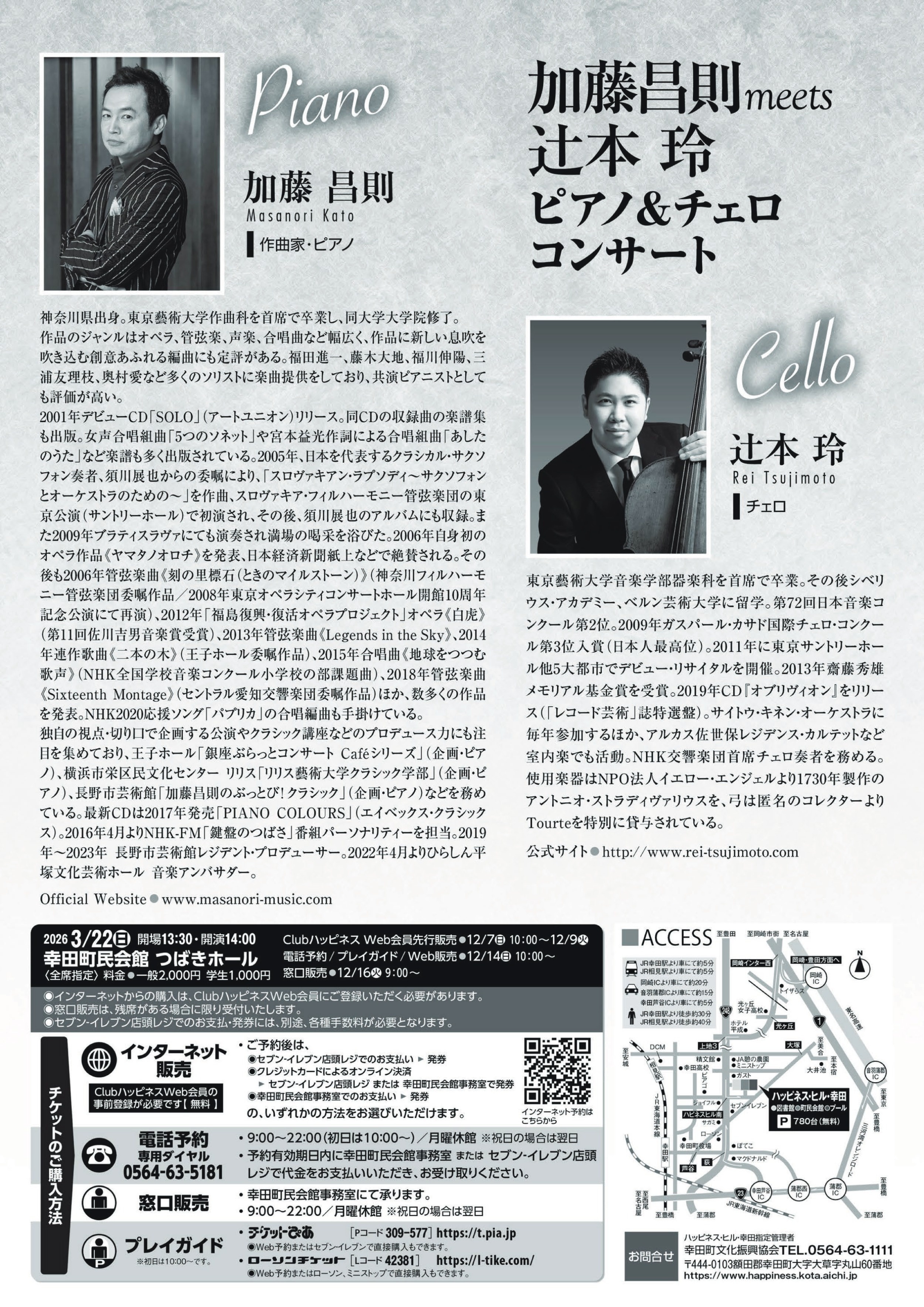 加藤 昌則 meets 辻本 玲 ピアノ&チェロ コンサート