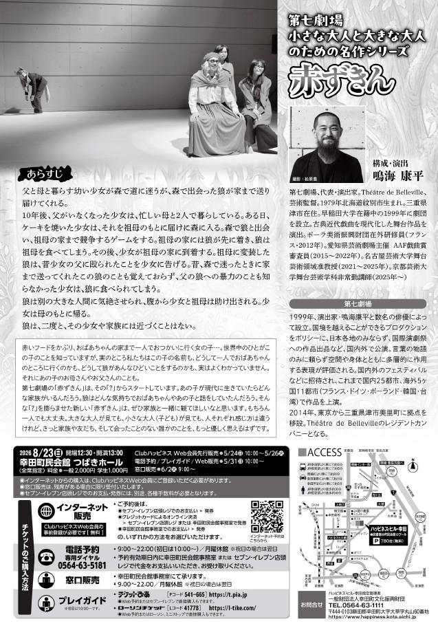 - ※車イス席をご希望の方は幸田町民会館(電話0564-63-5181)にお電話ください。
