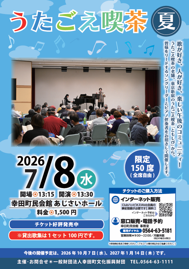 - うたごえ喫茶の老舗、東京新宿のうたごえ喫茶「ともしび」から、皆様をリードするソングリーダーとピアノ伴奏者をお招きして開催します。