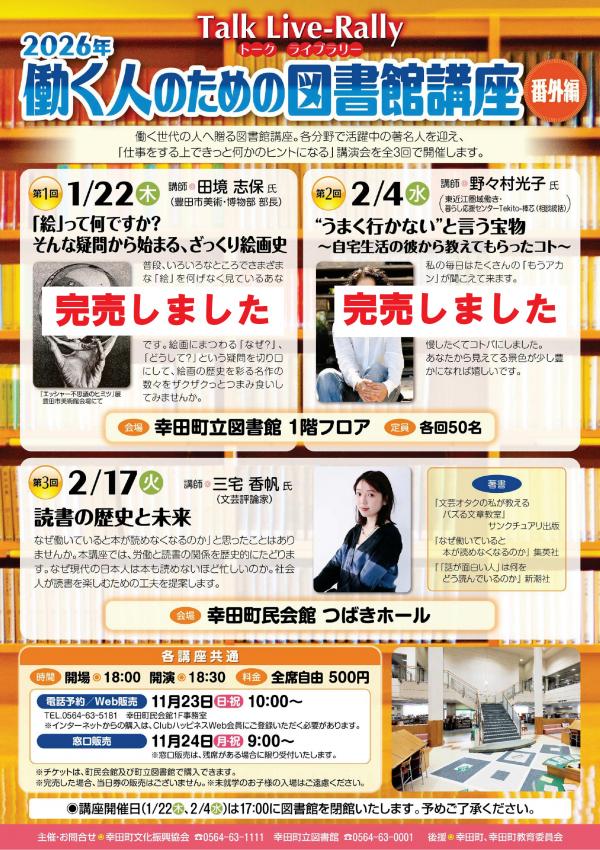 ◎窓口販売/11月24日(月・祝)9:00~幸田町民会館および幸田町立図書館カウンター