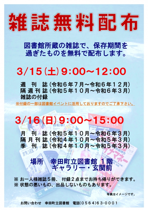 - ※持ち帰り冊数/お一人様雑誌5冊、付録2点まで