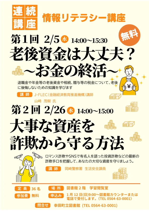 老後のお金についての知識や大事な資産を詐欺から守る方法を学びます。