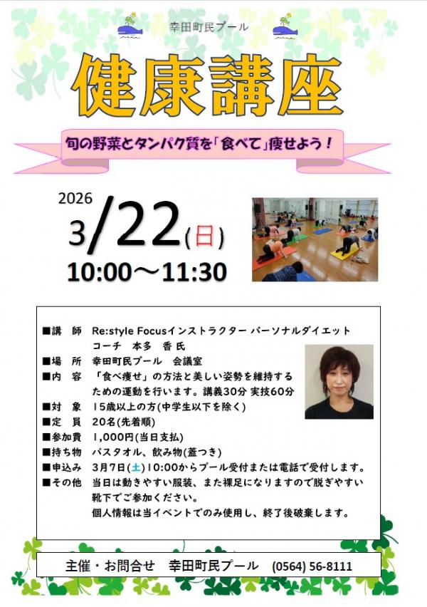 - 3月7日(土)10:00からプール受付または電話で受付します。