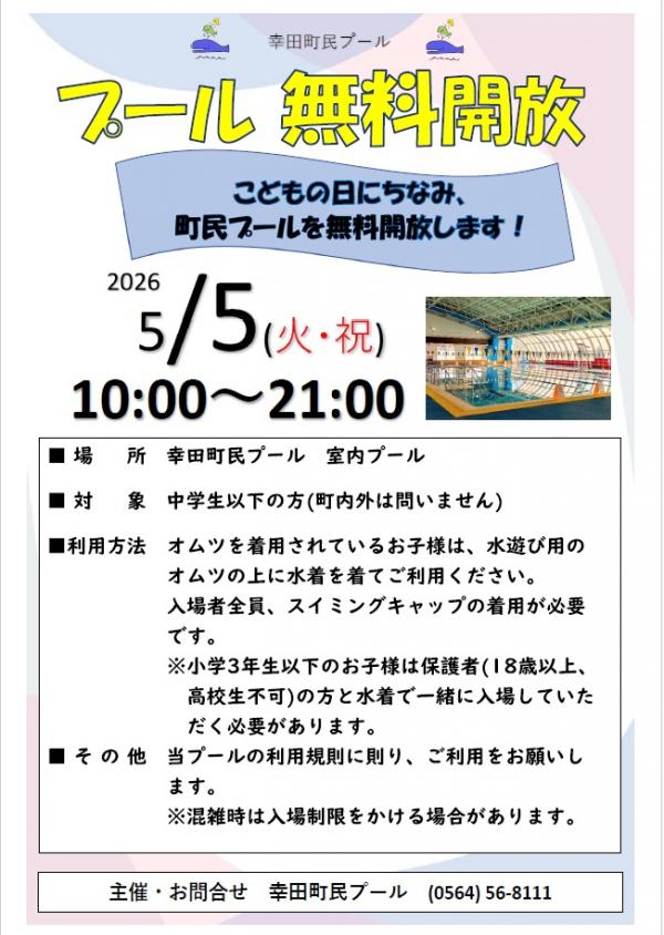 - 当プールの利用規則に則り、ご利用をお願いします。