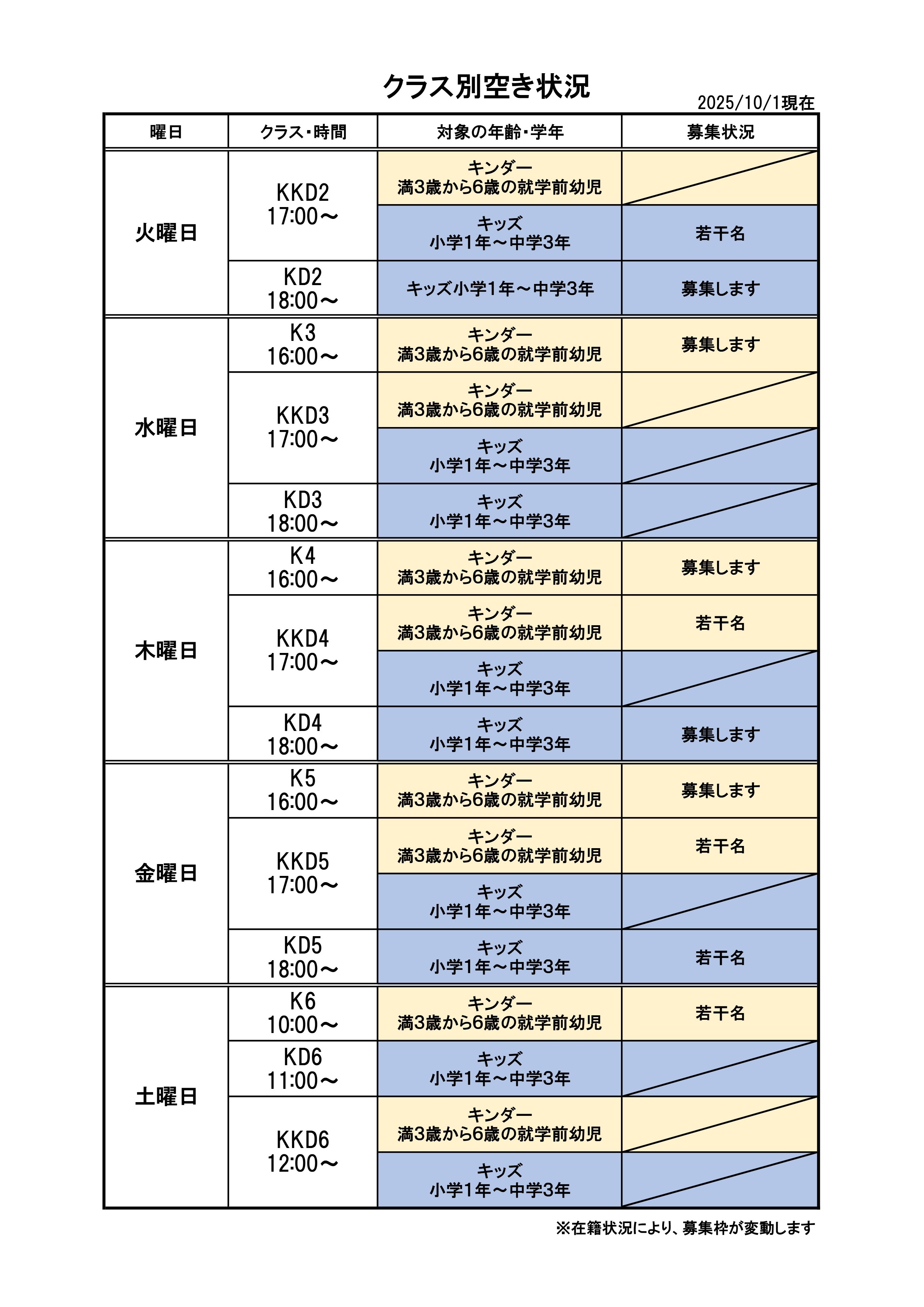 ※すでに定員に達しており、お申込みできないクラスもございます。