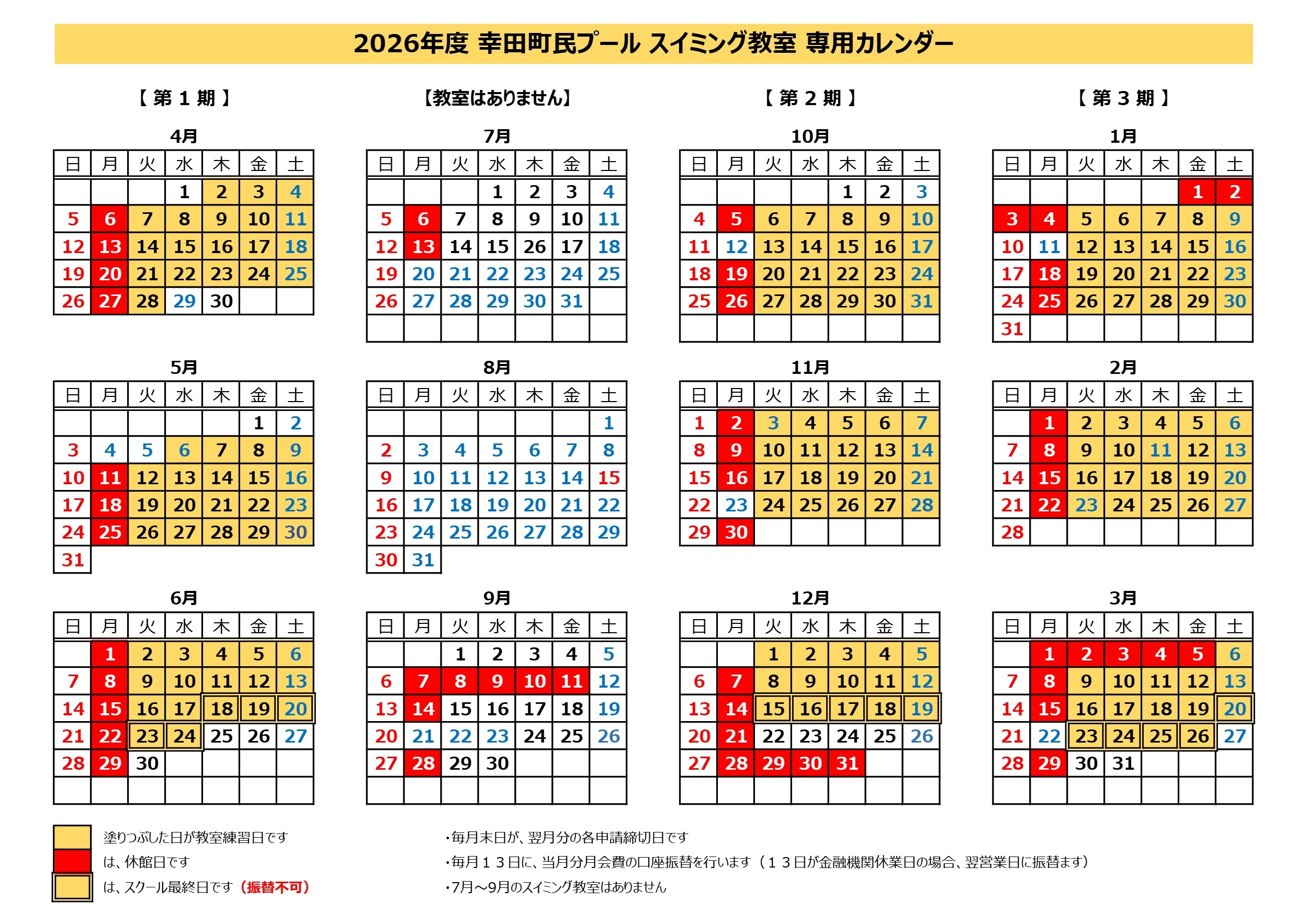 教室カレンダー(2026年度)